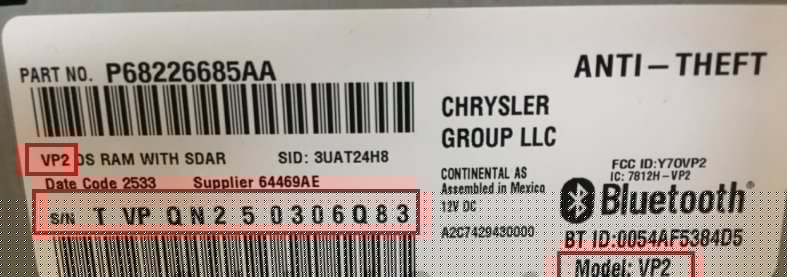 The radio calculator for the Chrysler and Dodge Ram Truck Uconnect Harman Kardon VP2 radio players. It works as well for other car brands using the same VP2 platform. Look for the TVPQN serial number.